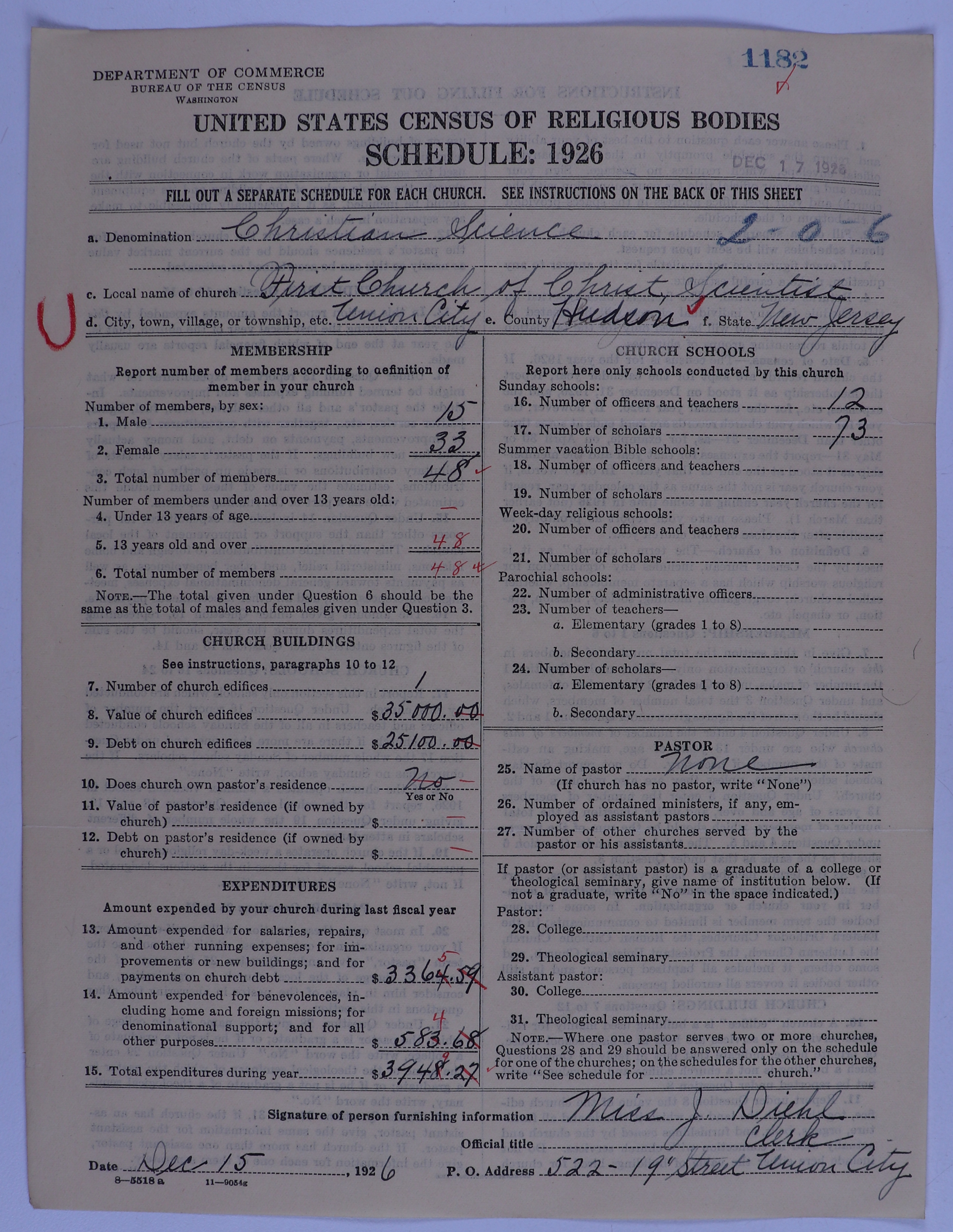 - Church of Christ, Scientist: 1182