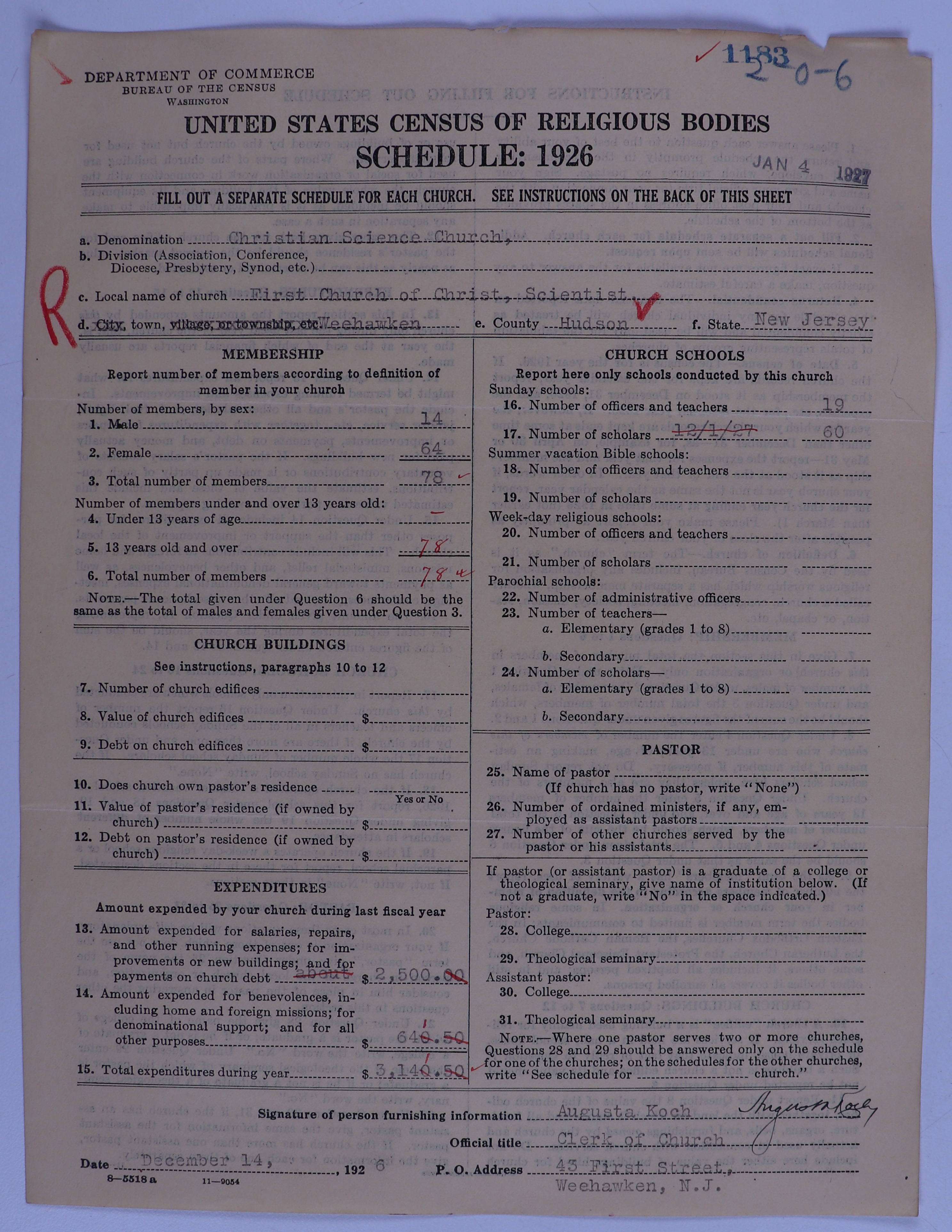 - Church of Christ, Scientist: 1183
