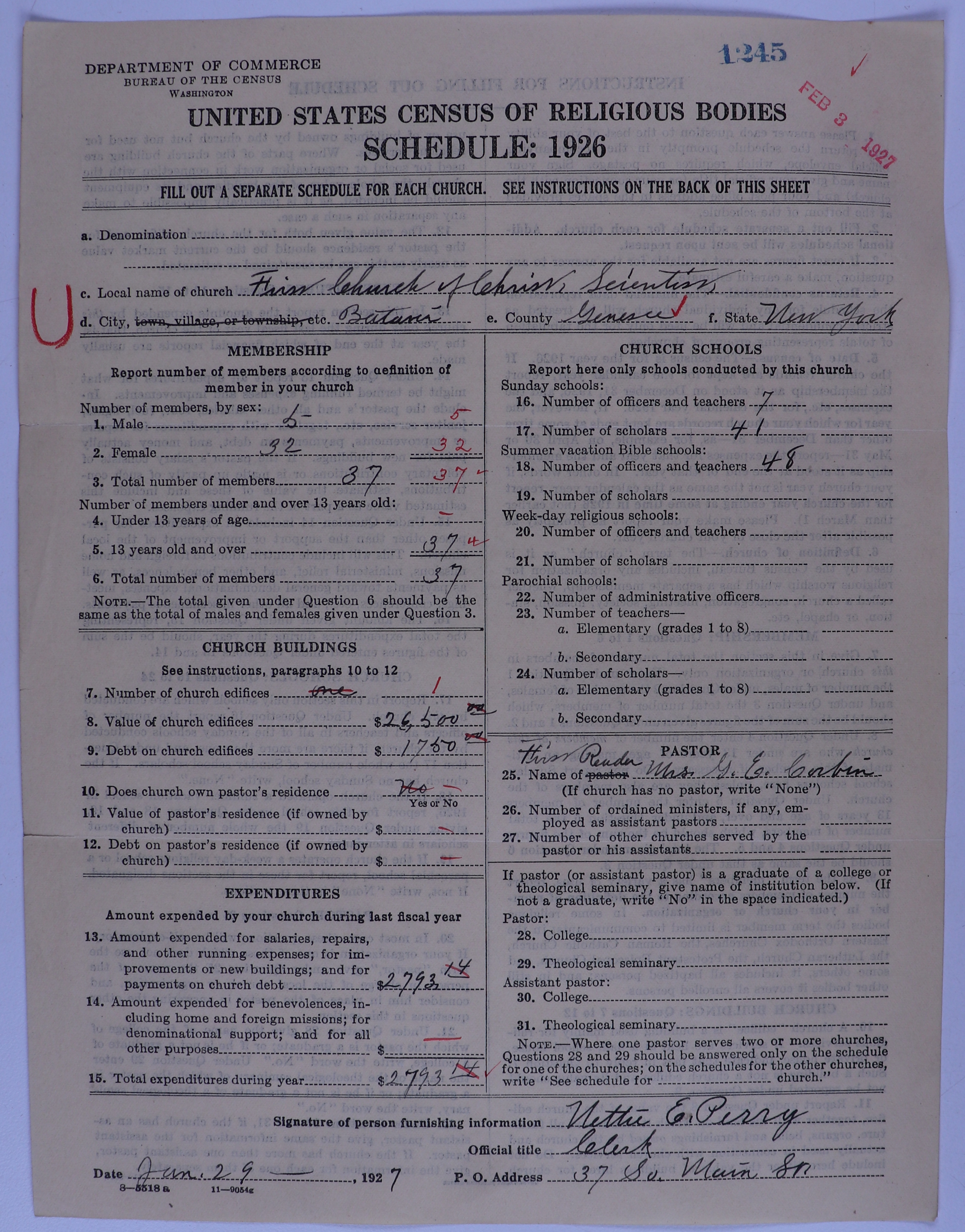 - Church of Christ, Scientist: 1245
