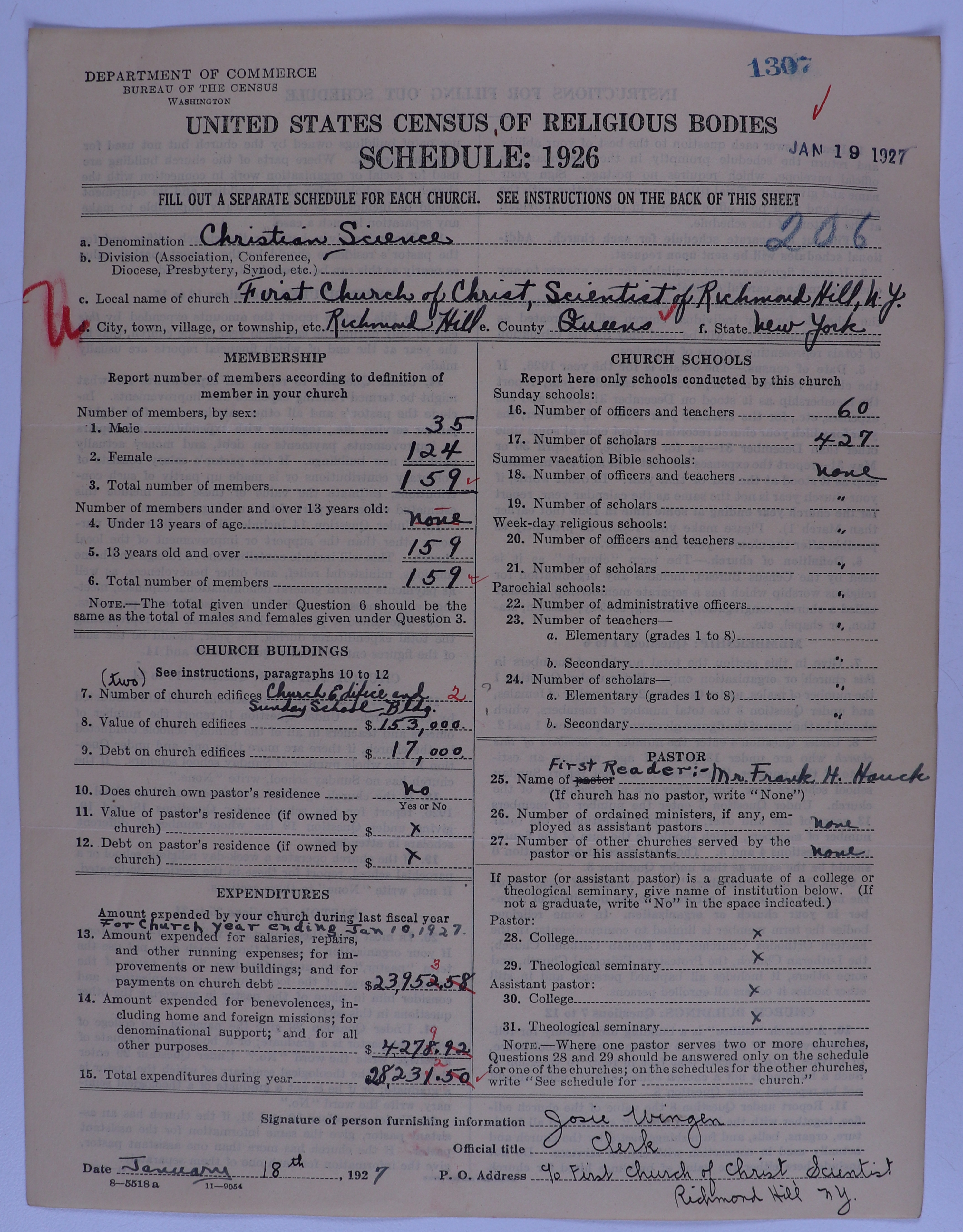- Church of Christ, Scientist: 1307