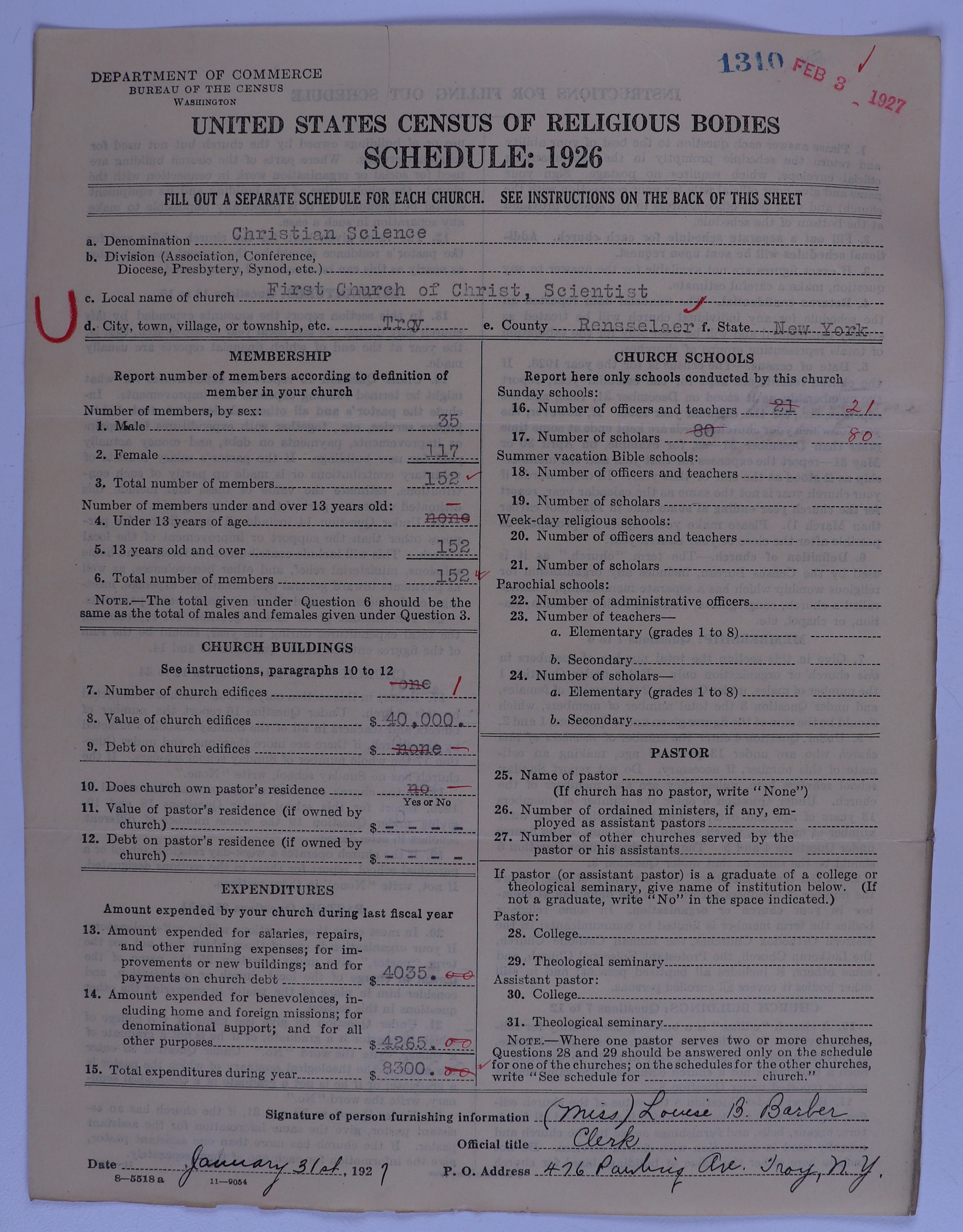 - Church of Christ, Scientist: 1310