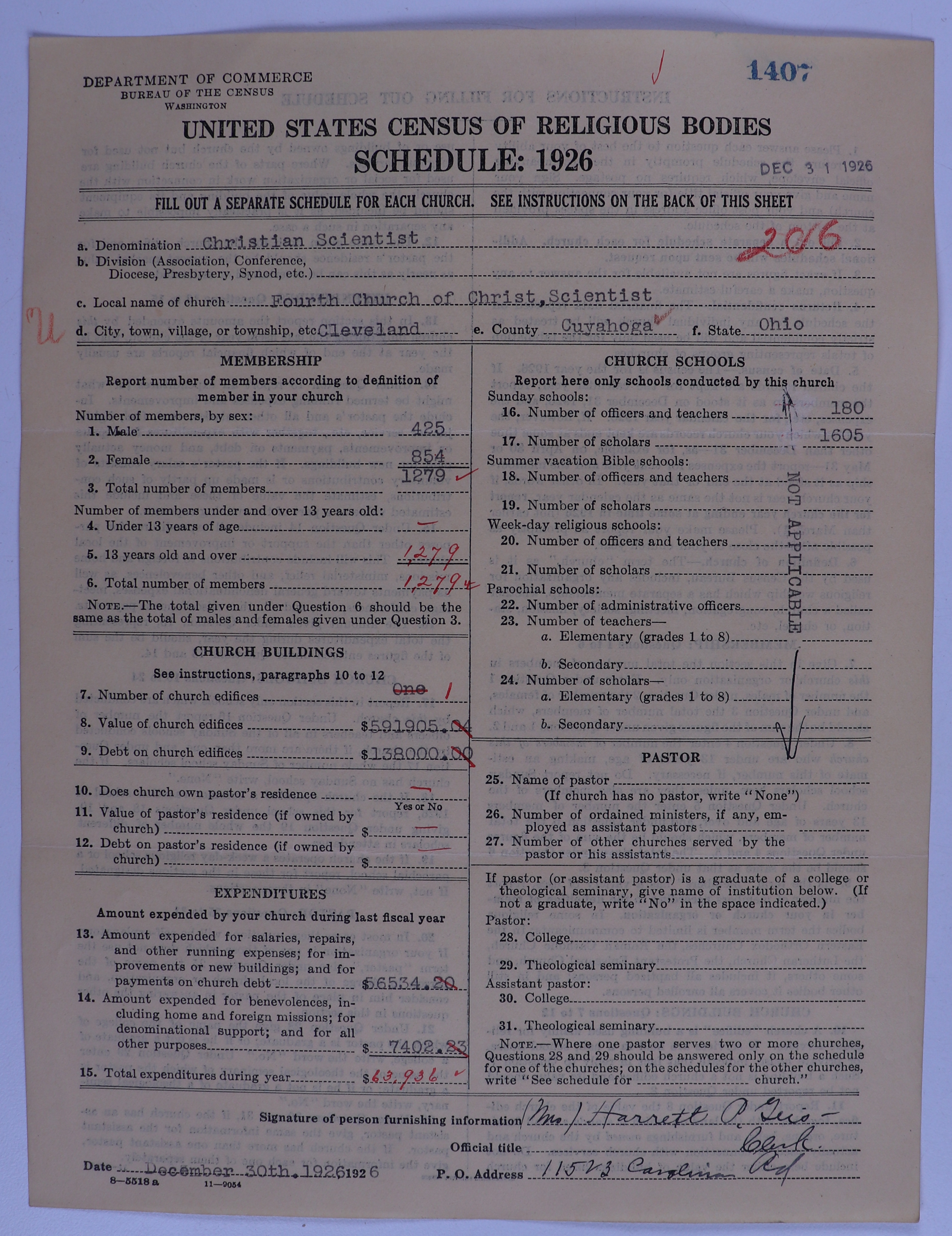 - Church of Christ, Scientist: 1407