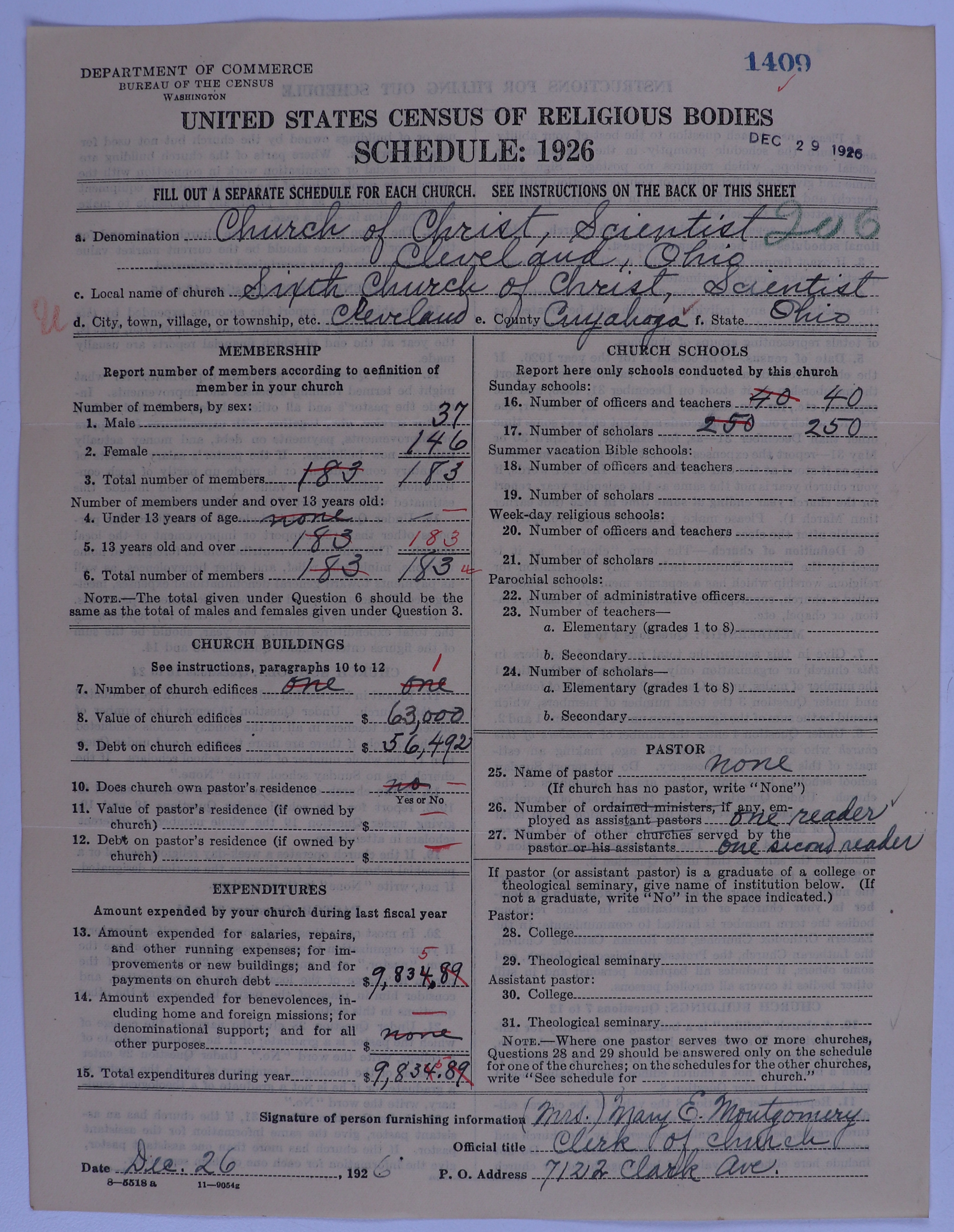 - Church of Christ, Scientist: 1409
