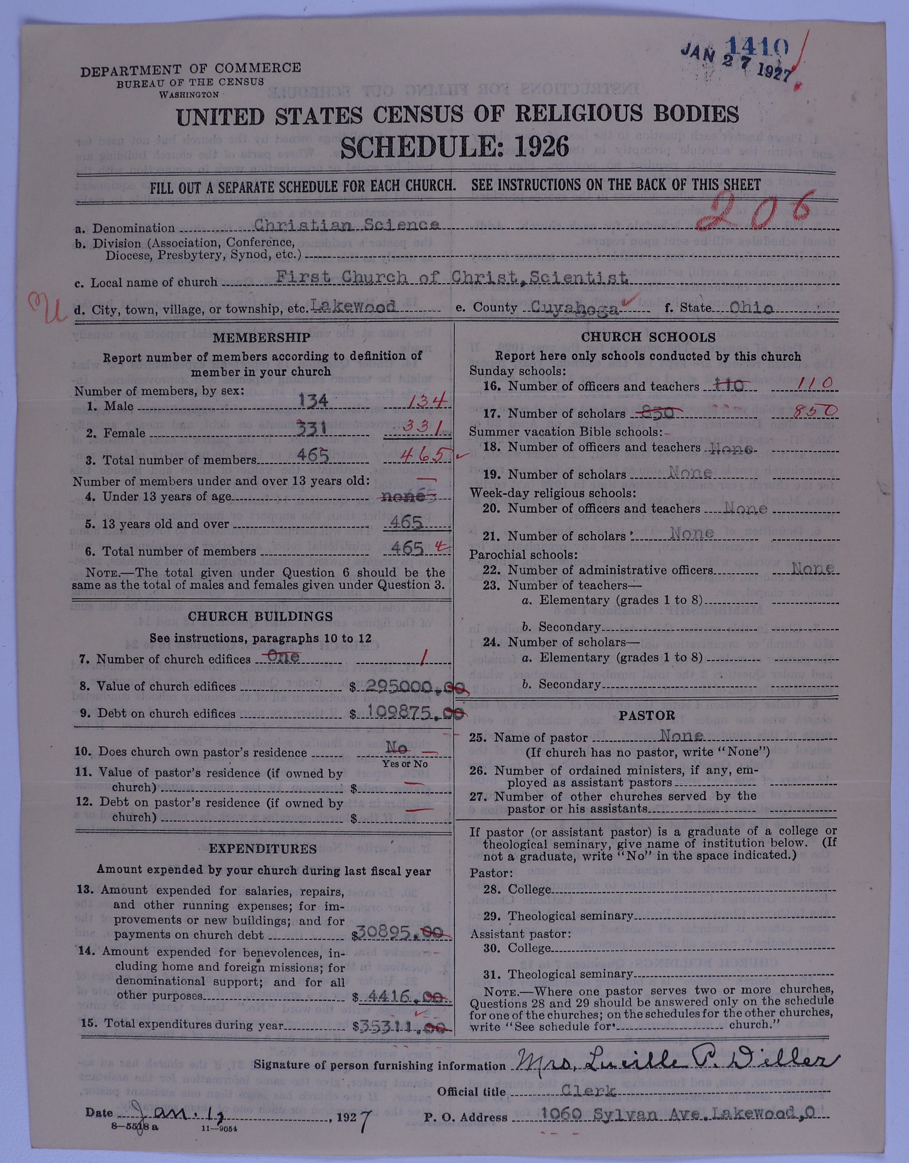 - Church of Christ, Scientist: 1410
