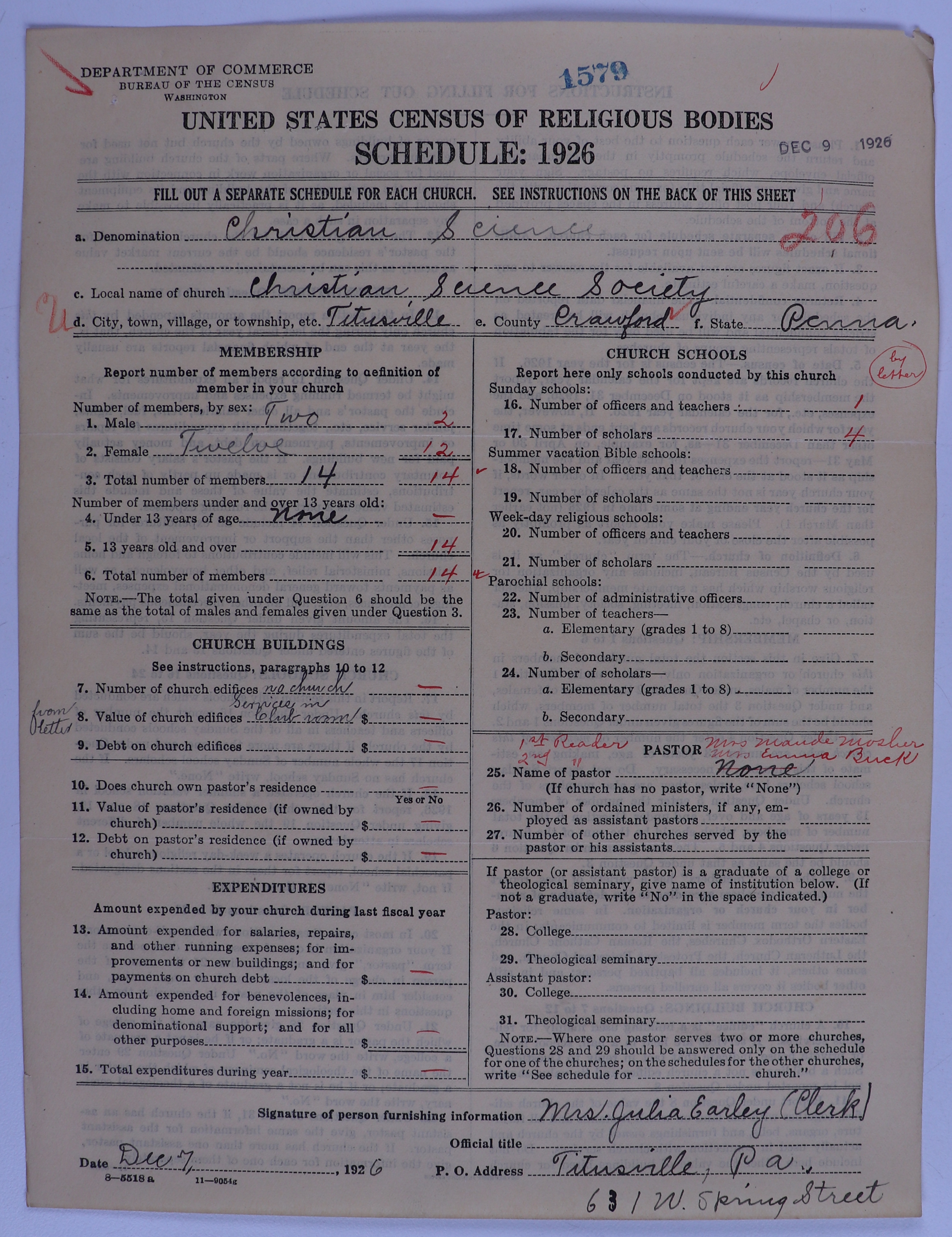 - Church of Christ, Scientist: 1579