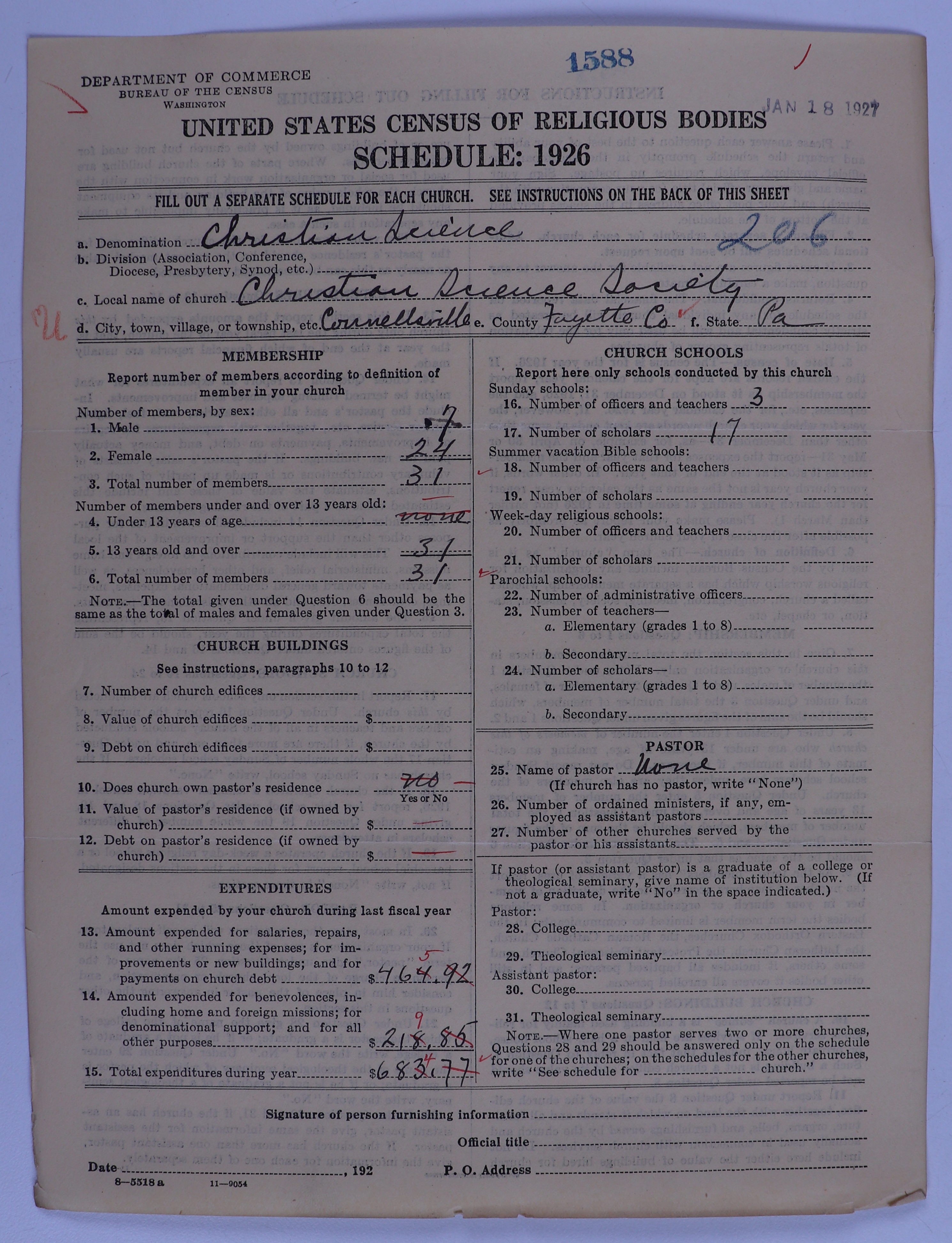 - Church of Christ, Scientist: 1588