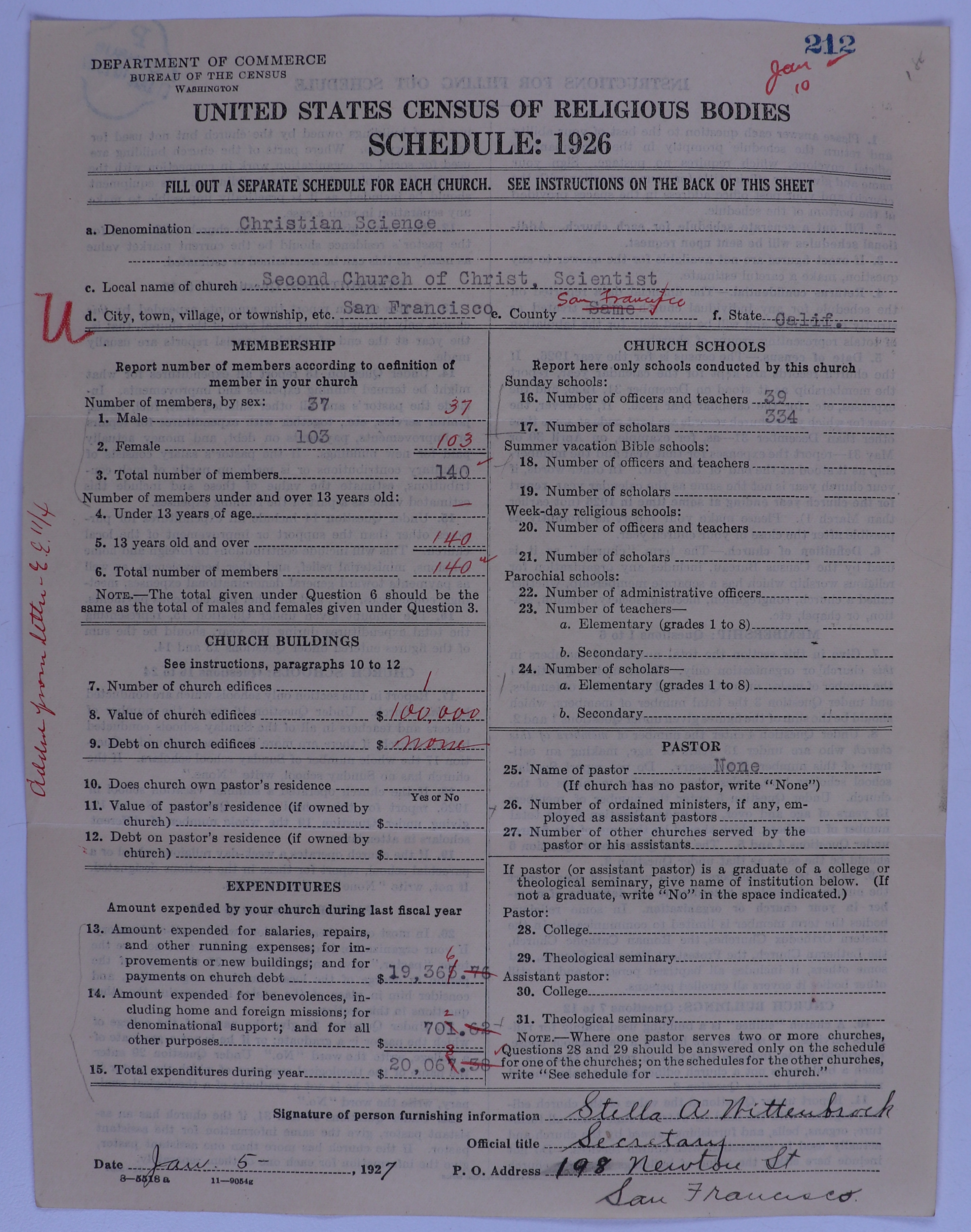 - Church of Christ, Scientist: 212