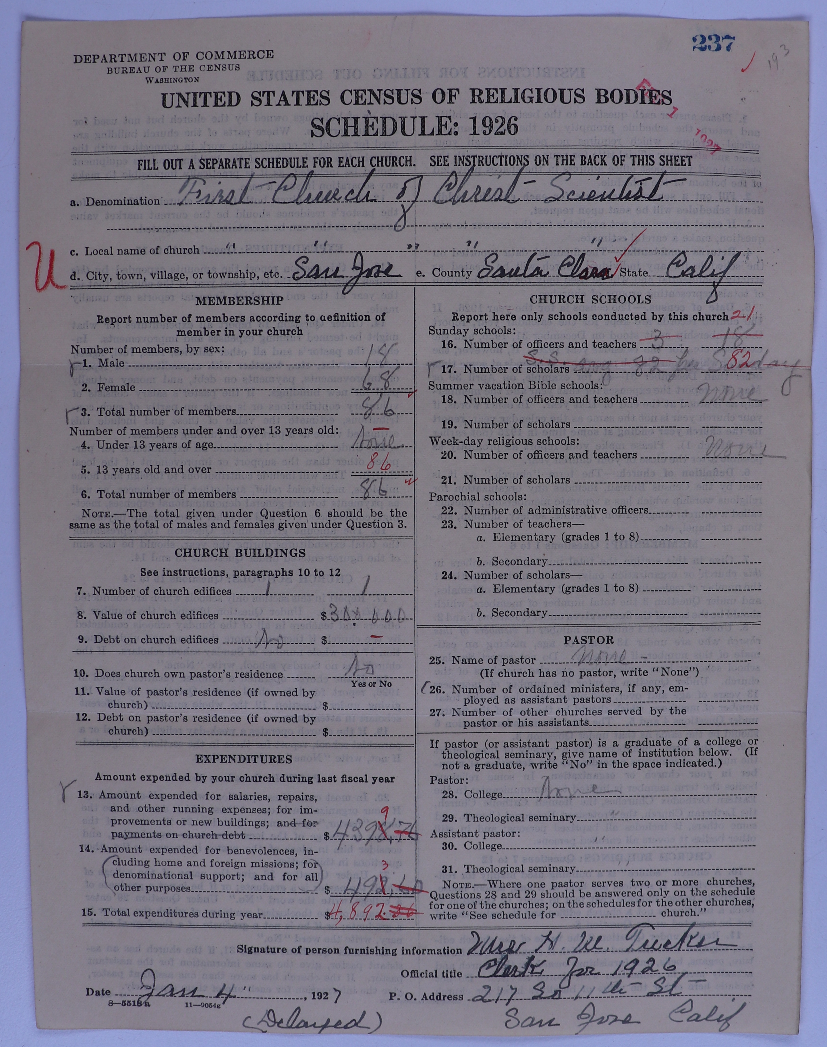 - Church of Christ, Scientist: 237