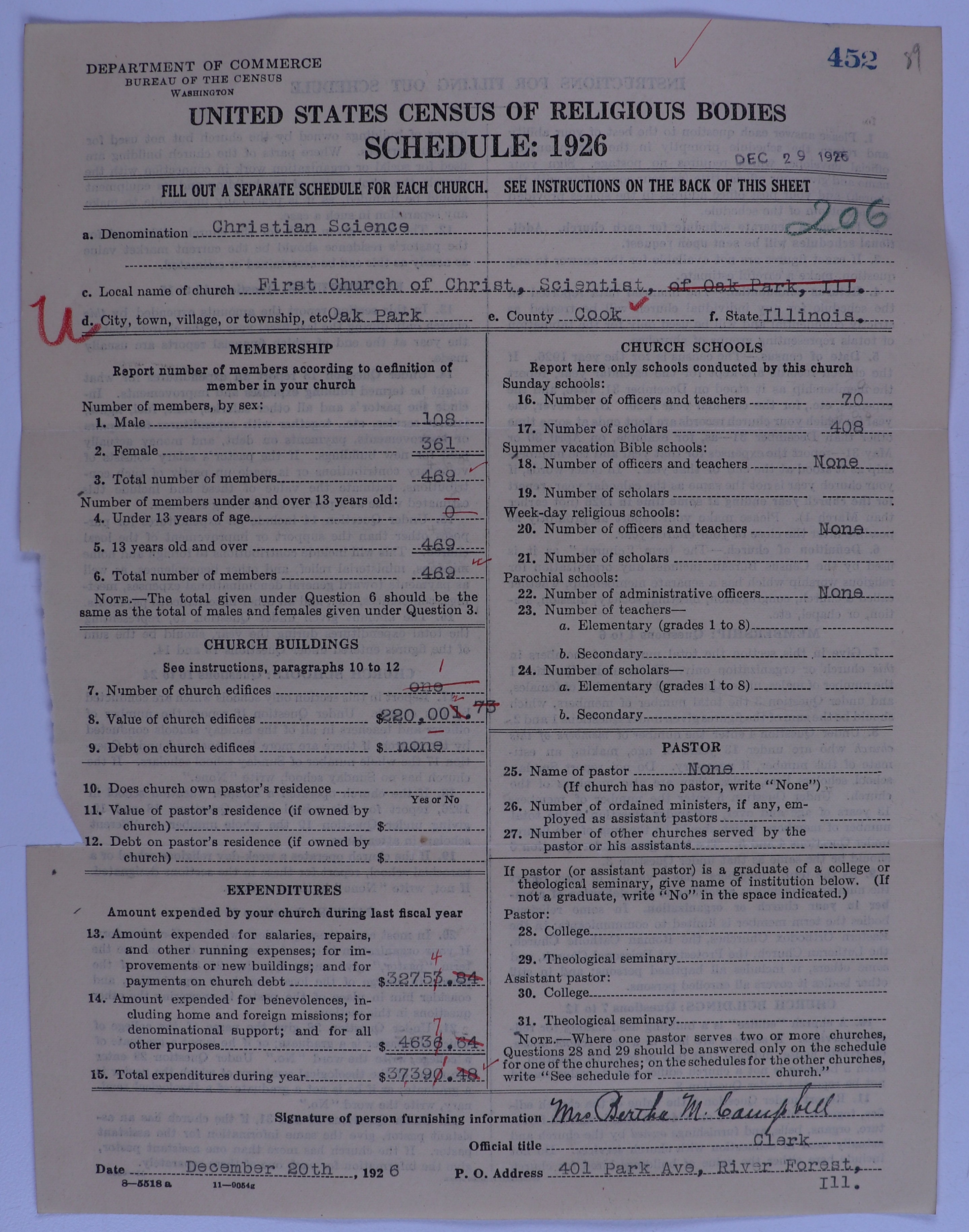 - Church of Christ, Scientist: 452