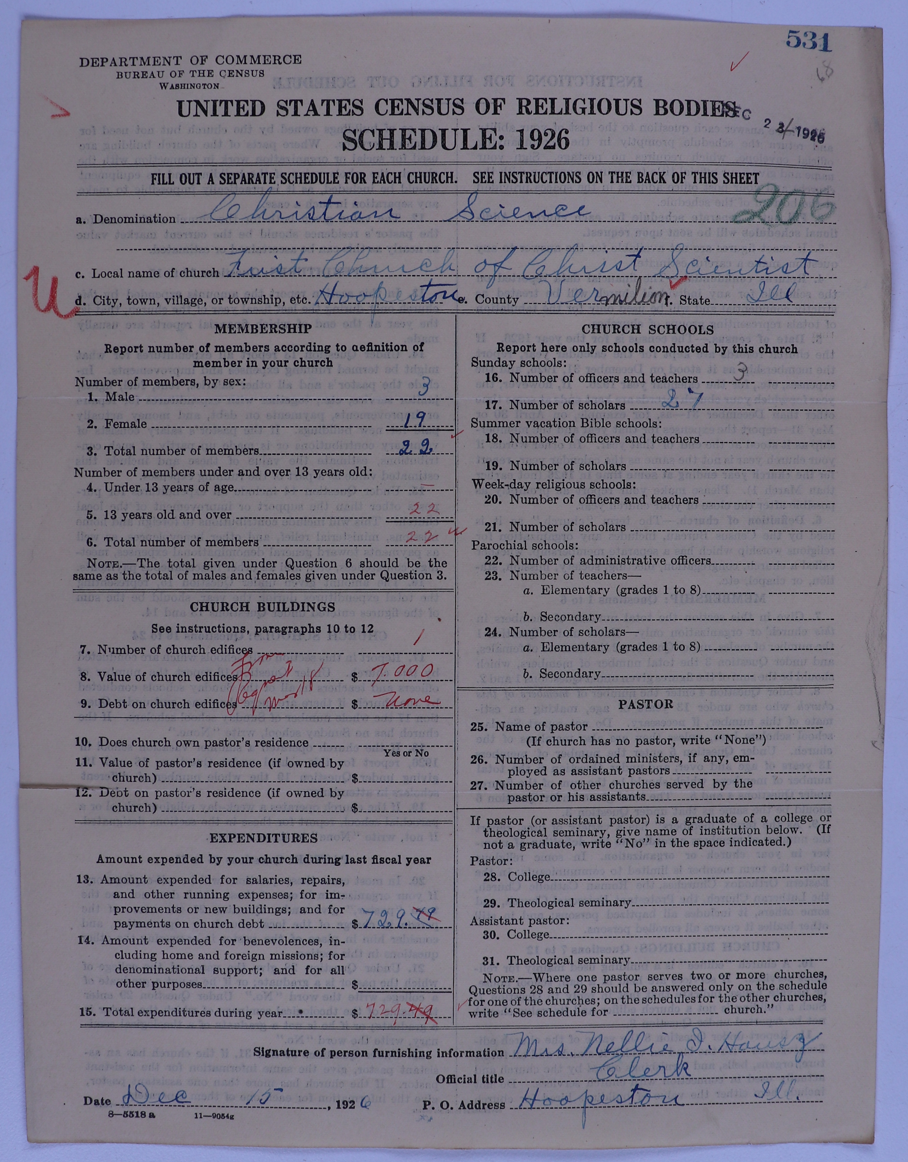 - Church of Christ, Scientist: 531