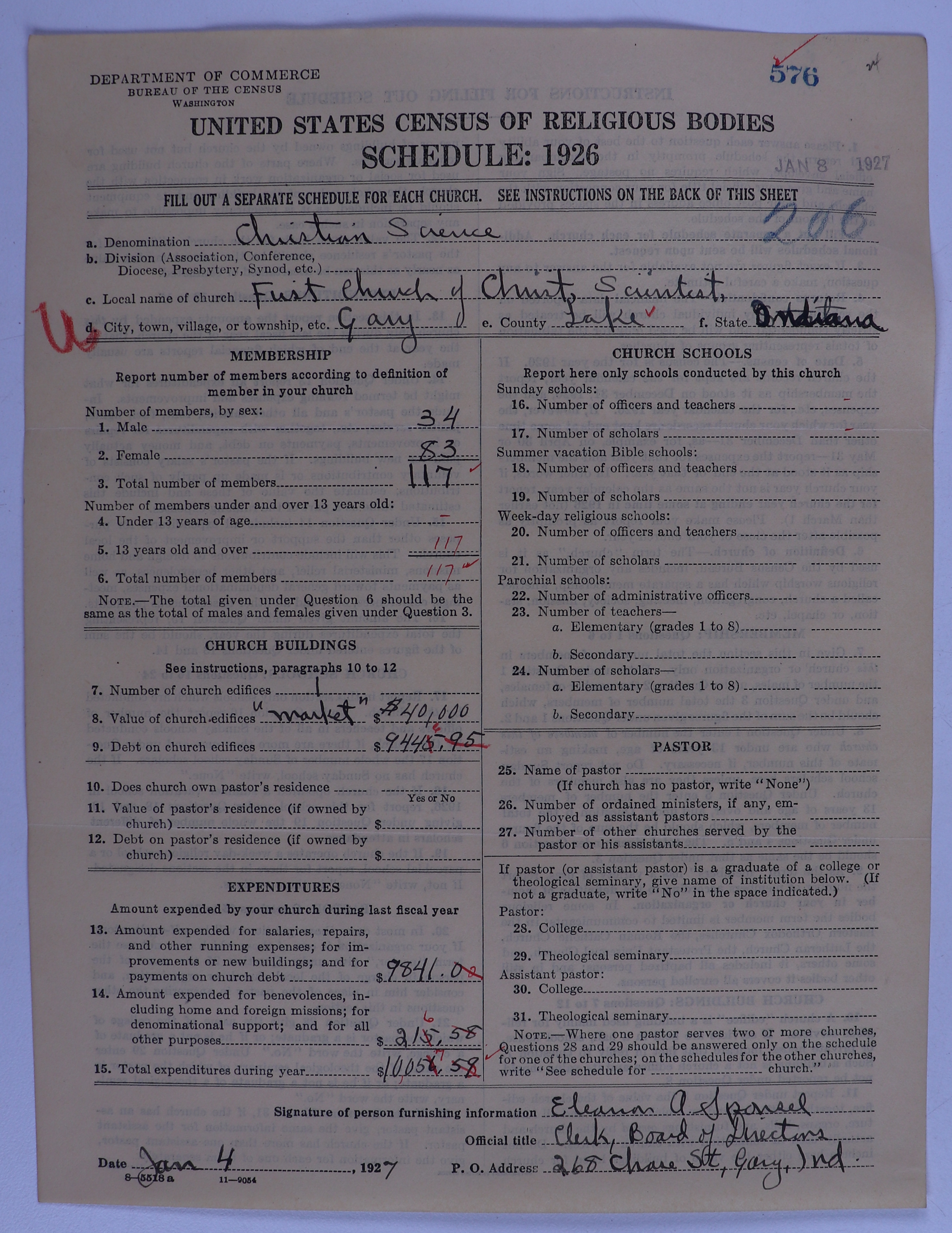 - Church of Christ, Scientist: 576