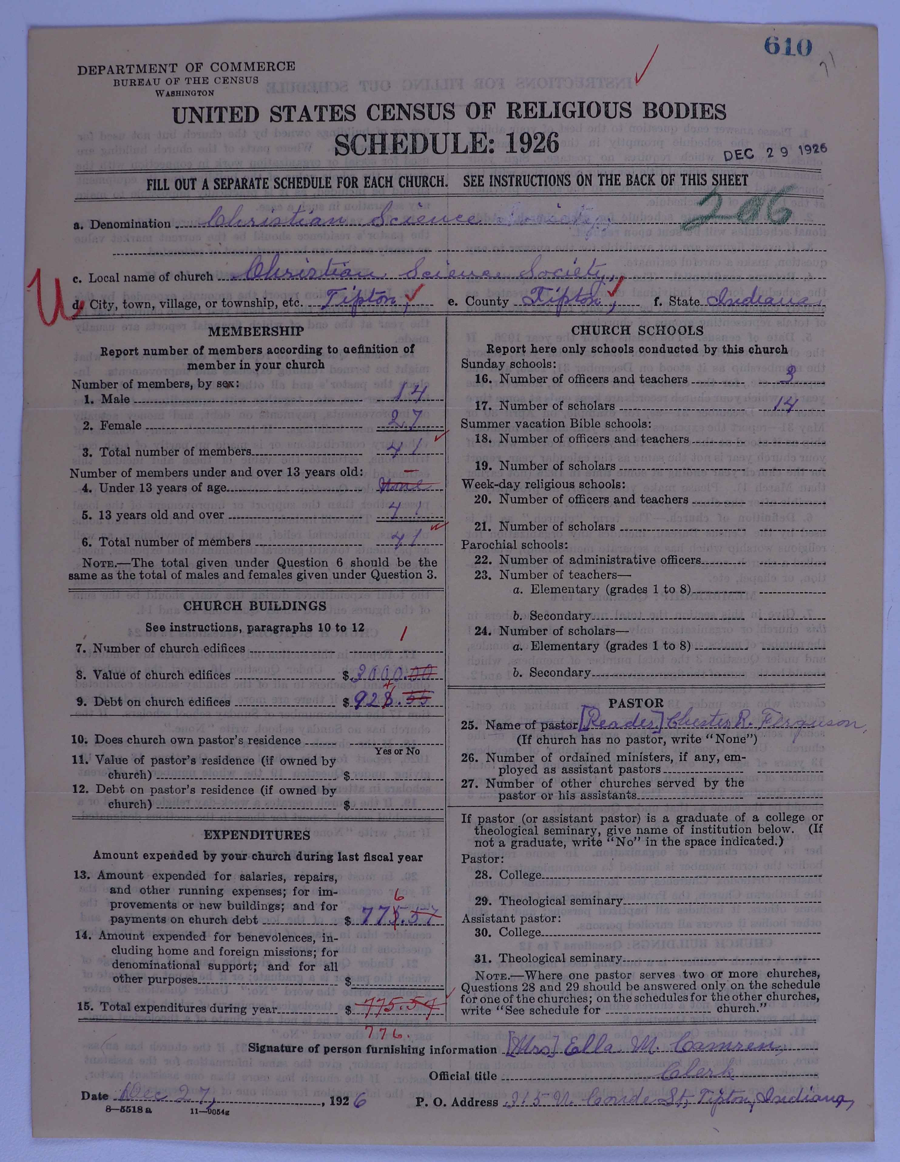 Church of Christ, Scientist: 610