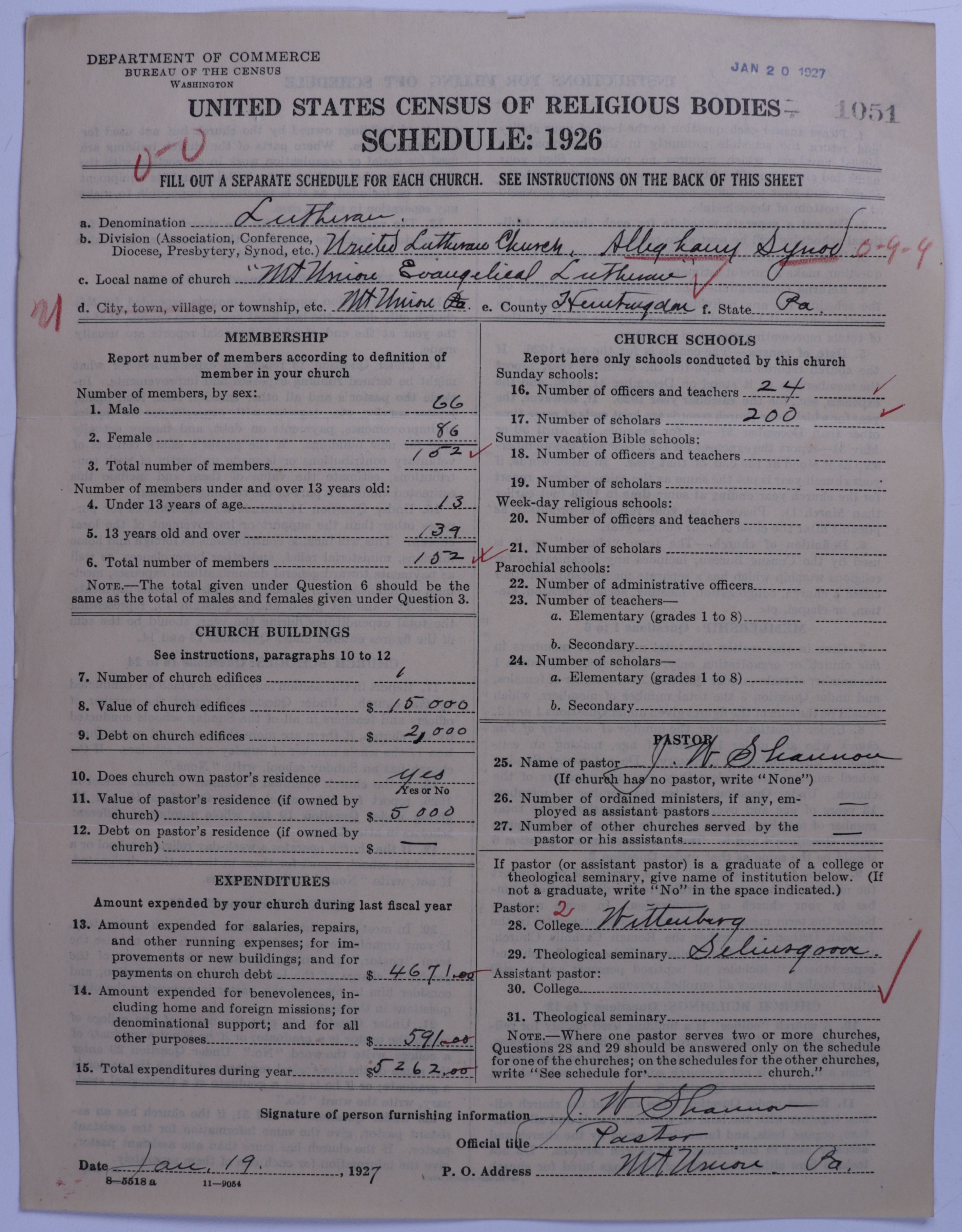 - United Lutheran Church in America: 1051