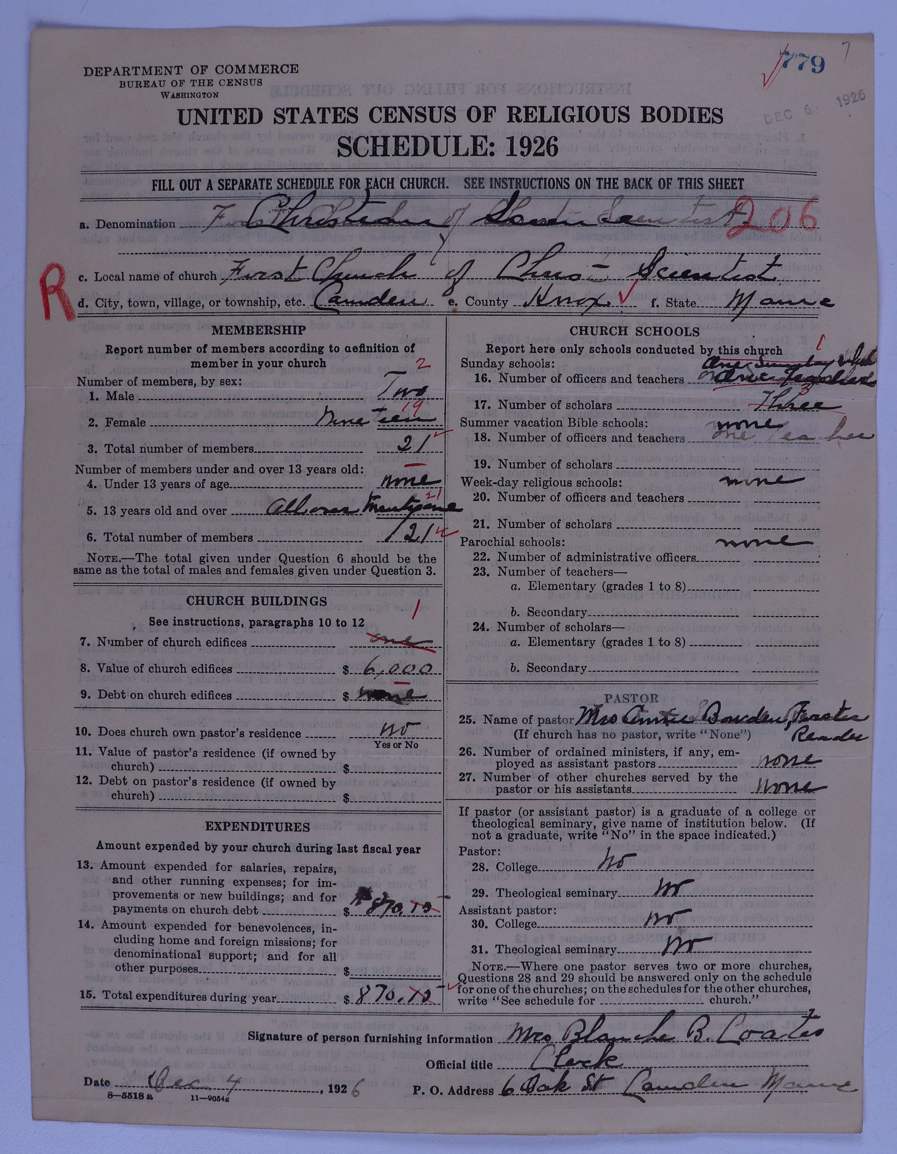 Church of Christ, Scientist: 779