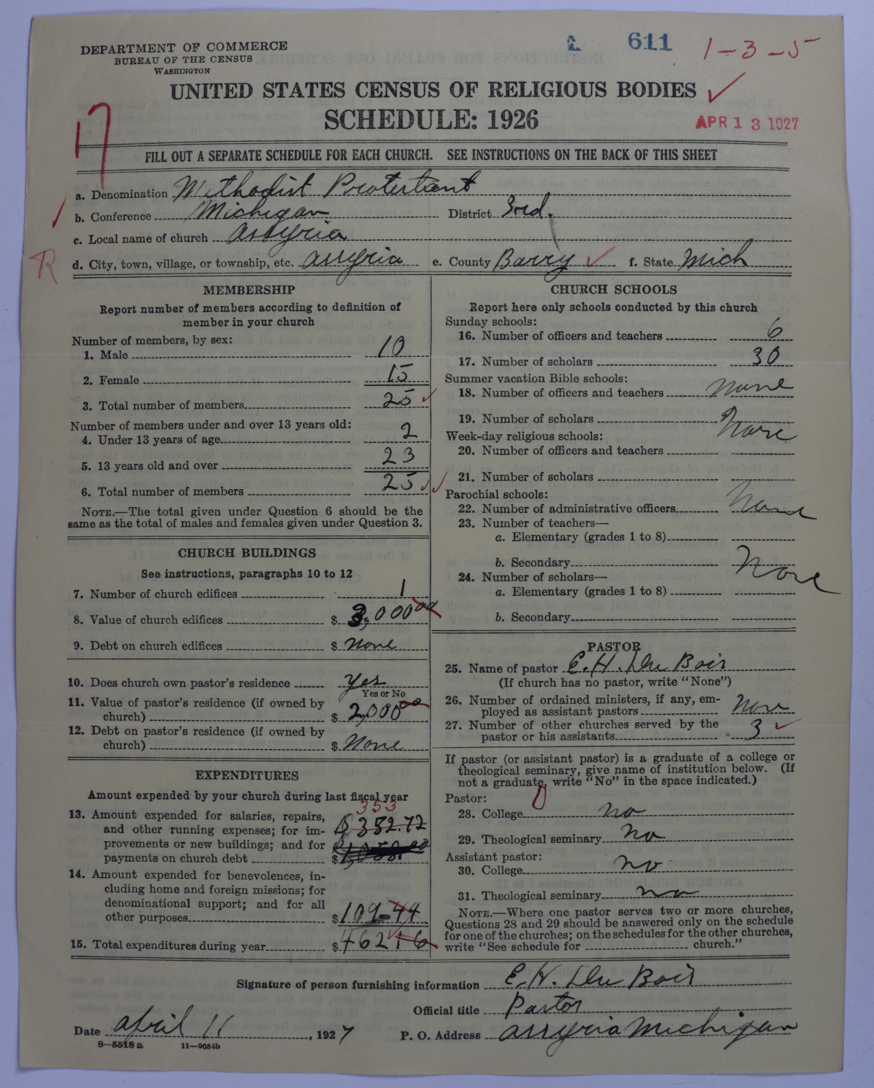 Methodist Protestant Church: 611