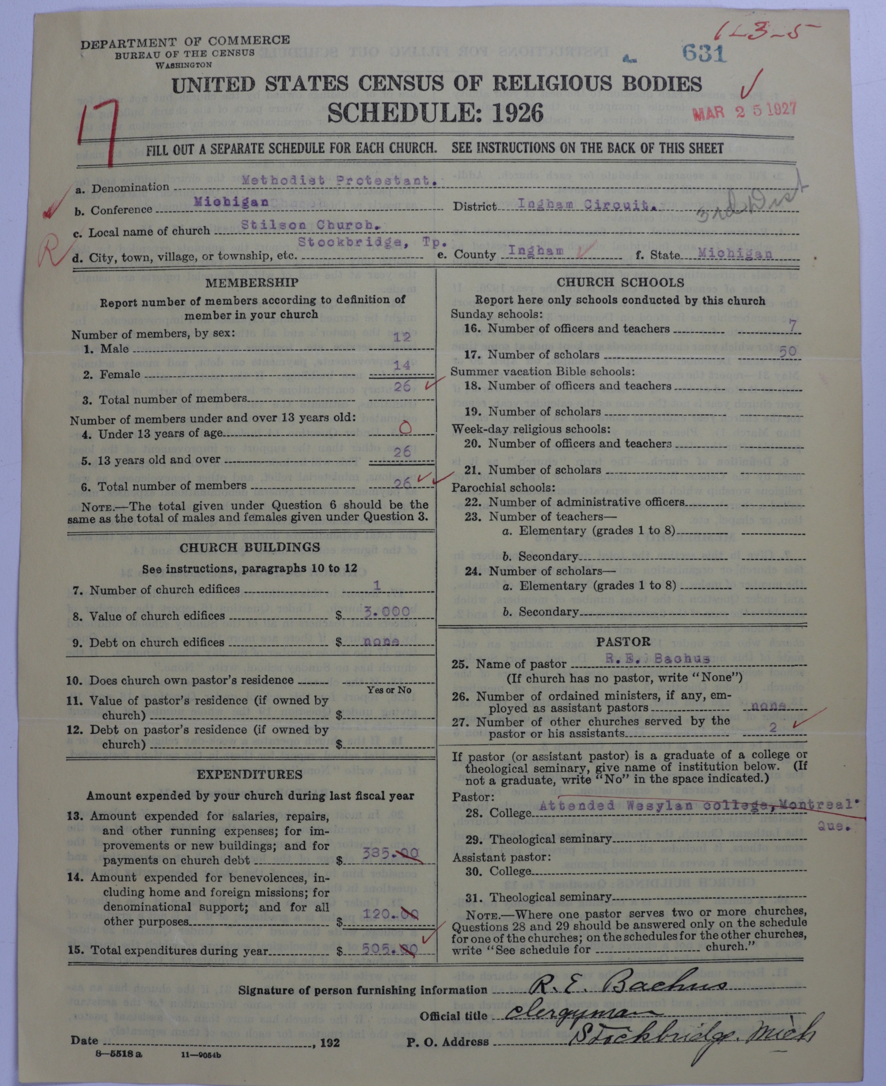 - Methodist Protestant Church: 631