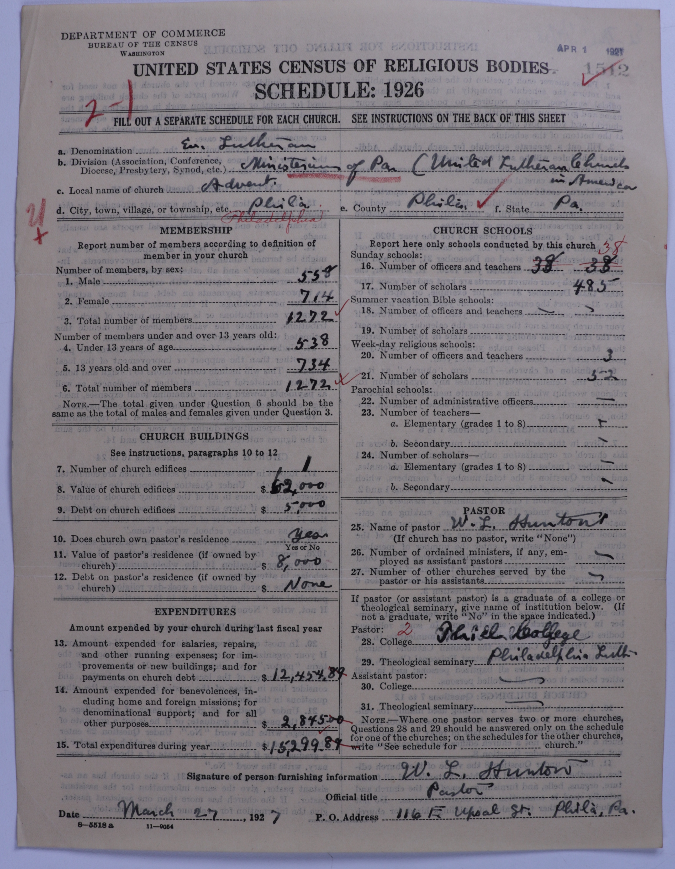- United Lutheran Church in America: 1512