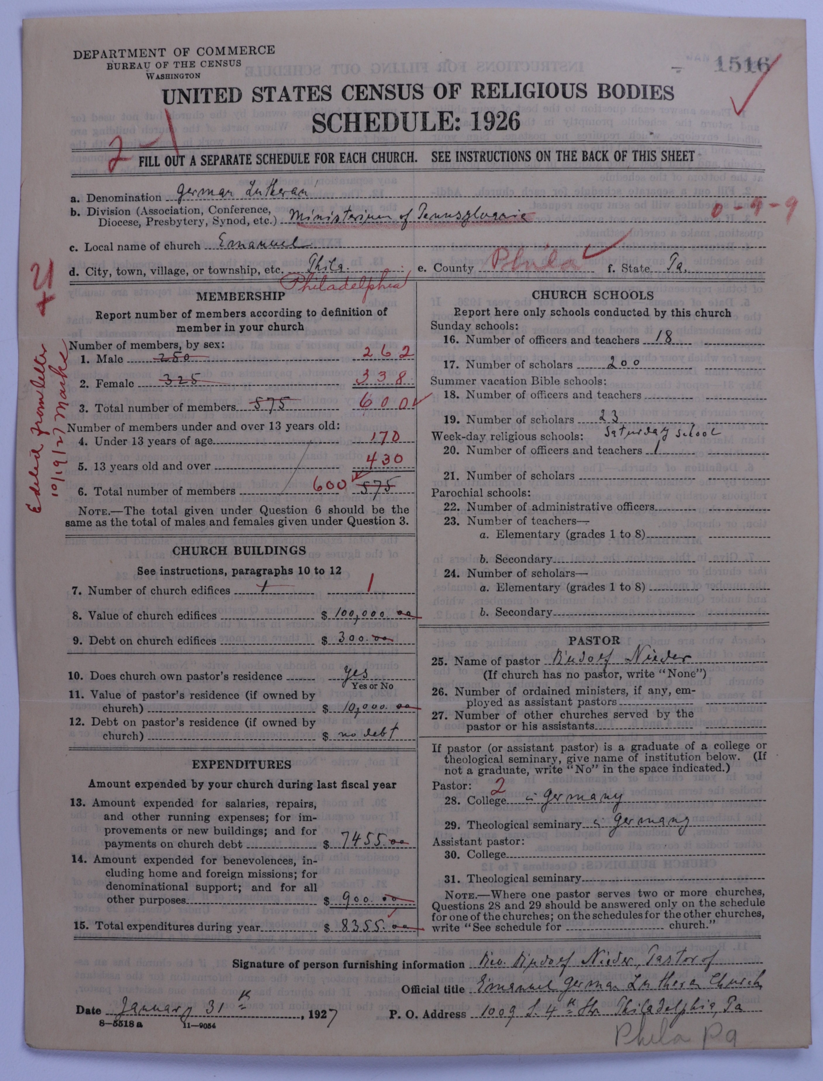 - United Lutheran Church in America: 1516