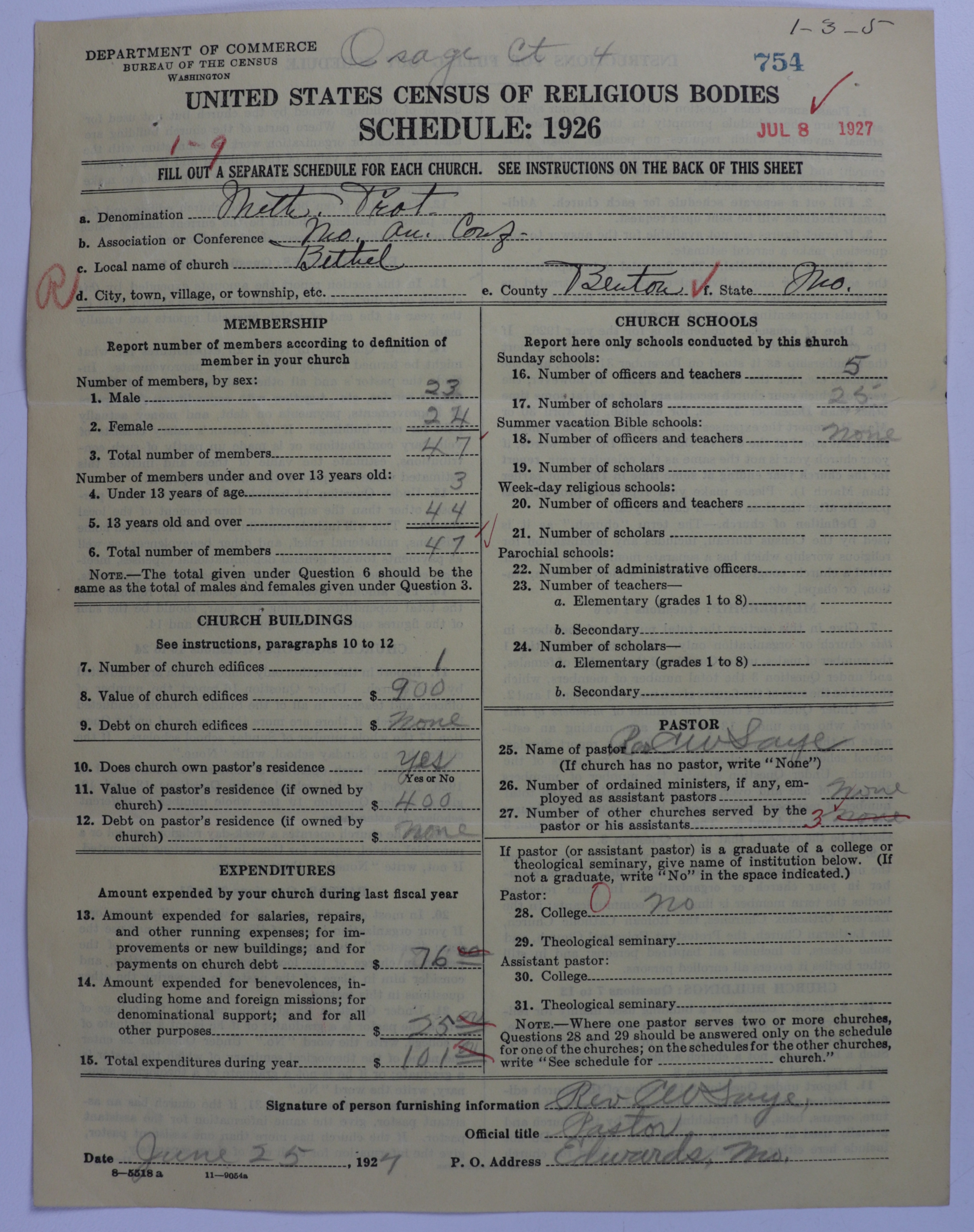 Methodist Protestant Church: 754