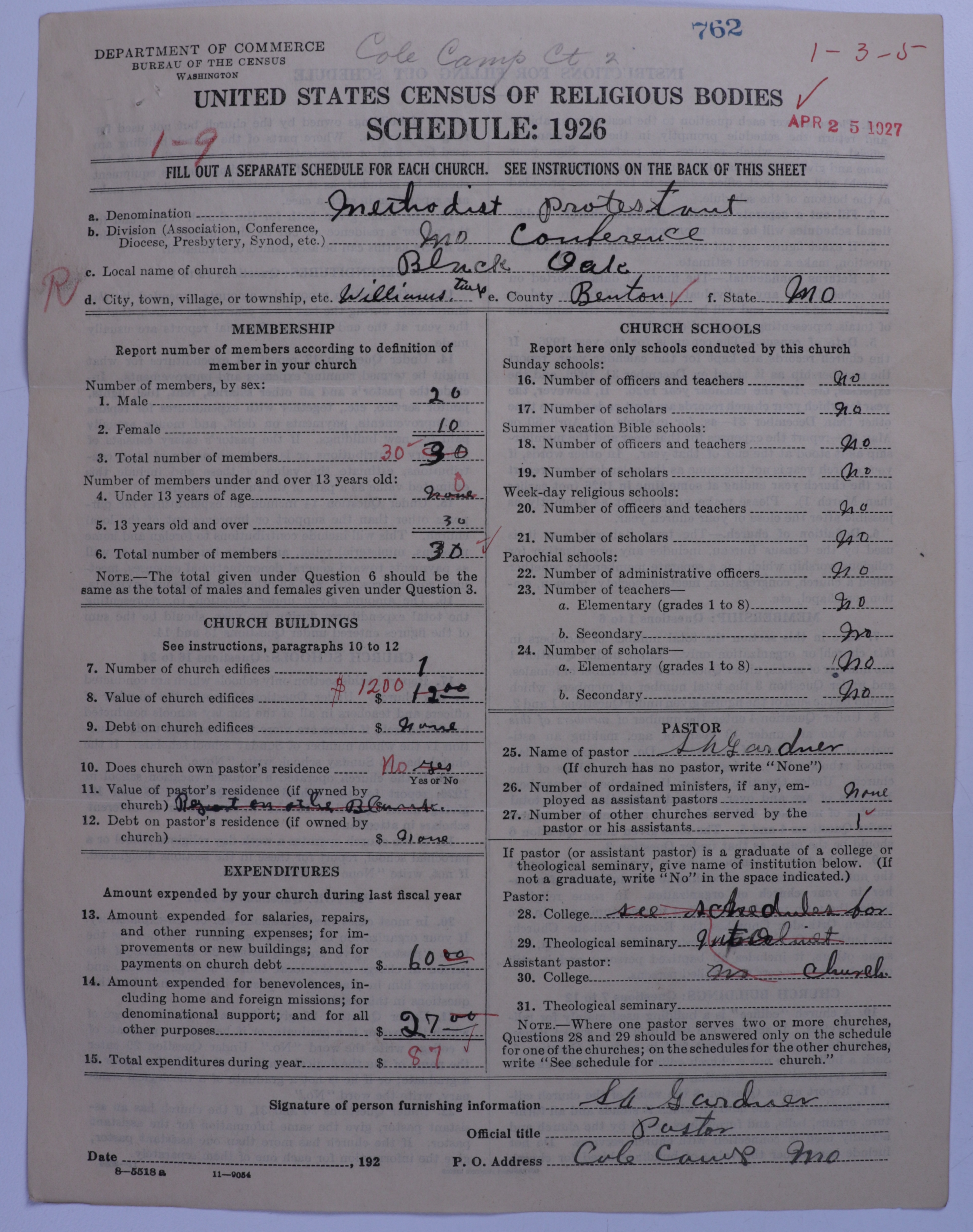 - Methodist Protestant Church: 762