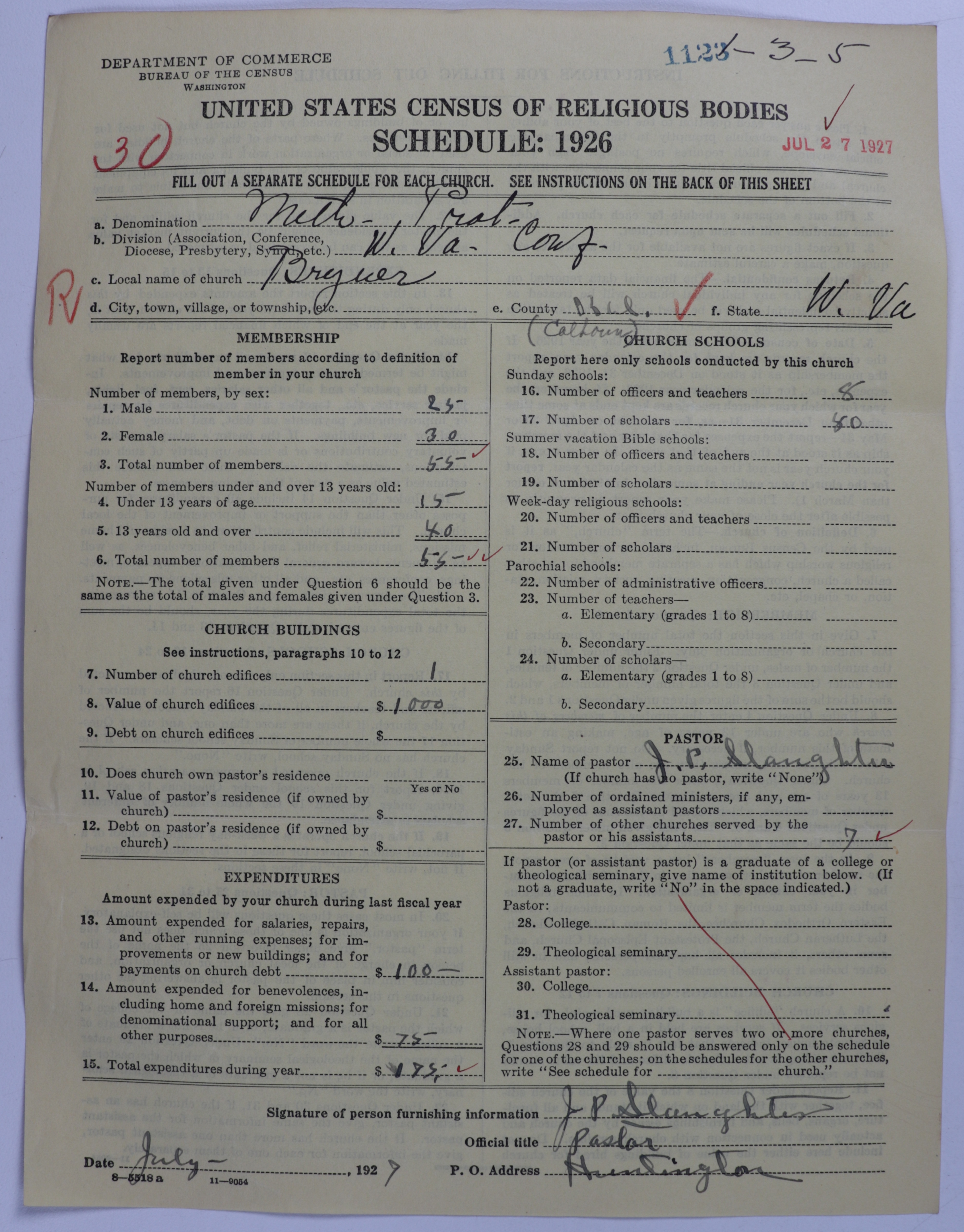 - Methodist Protestant Church: 1123