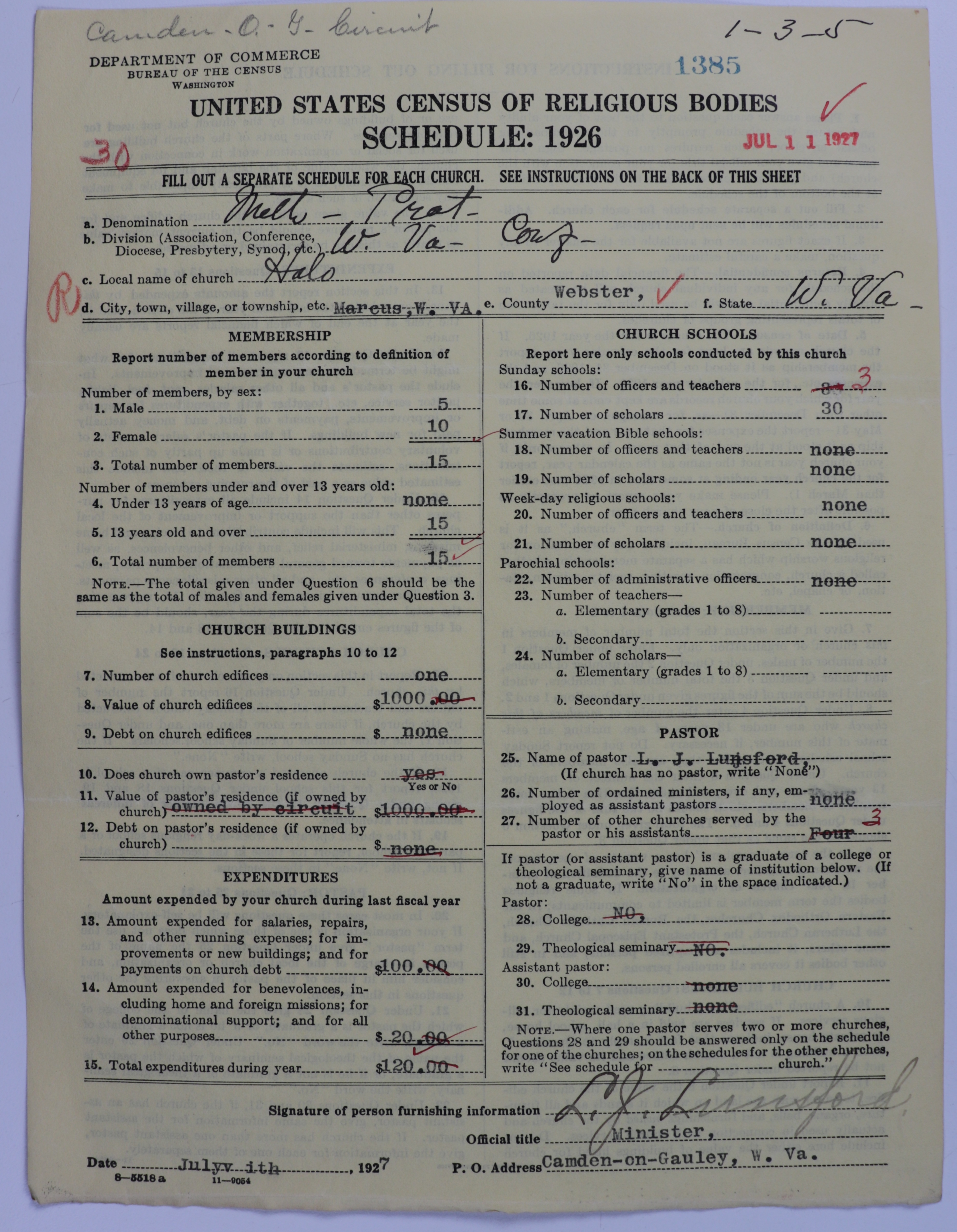 - Methodist Protestant Church: 1385