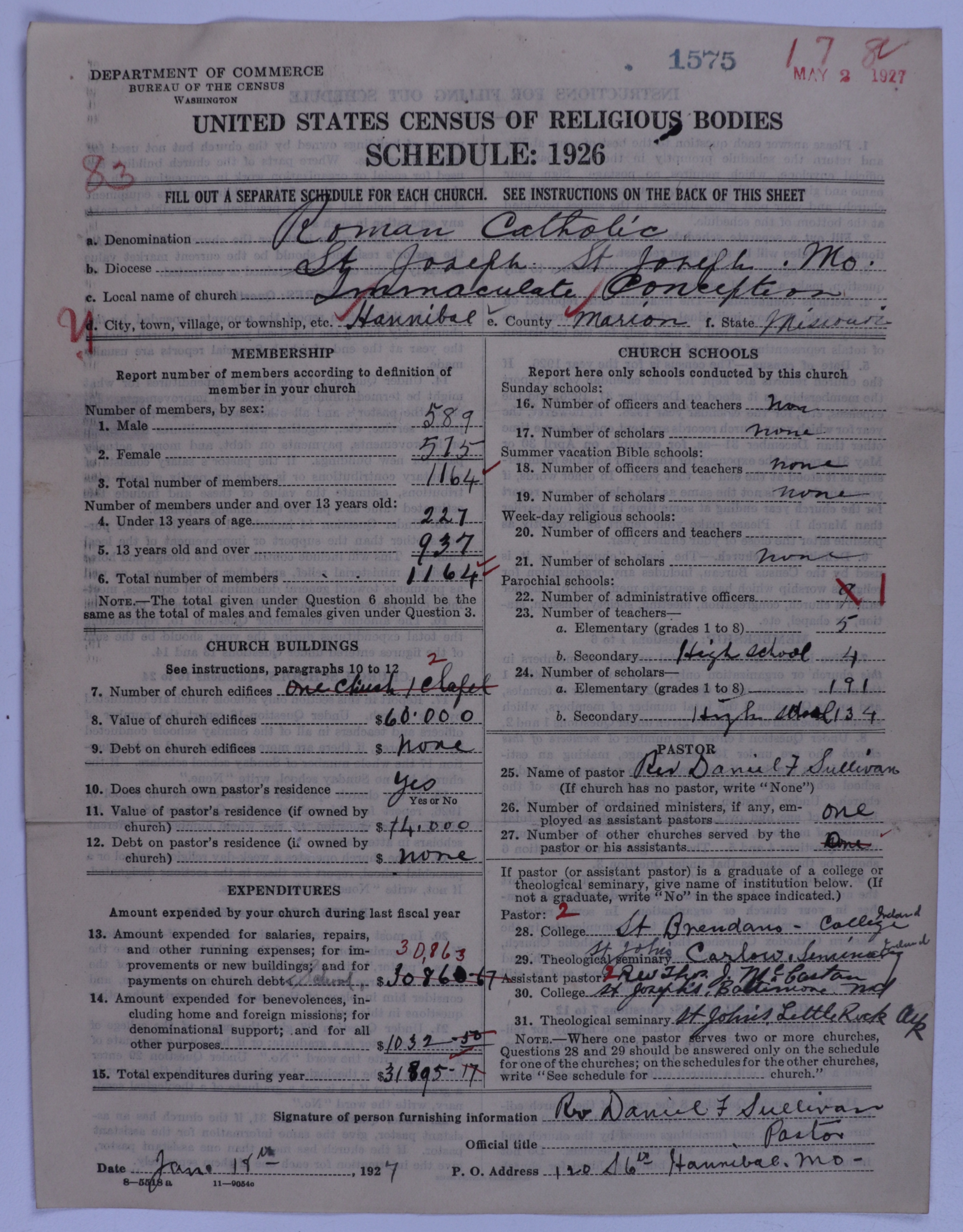 - Roman Catholic Church: 1575