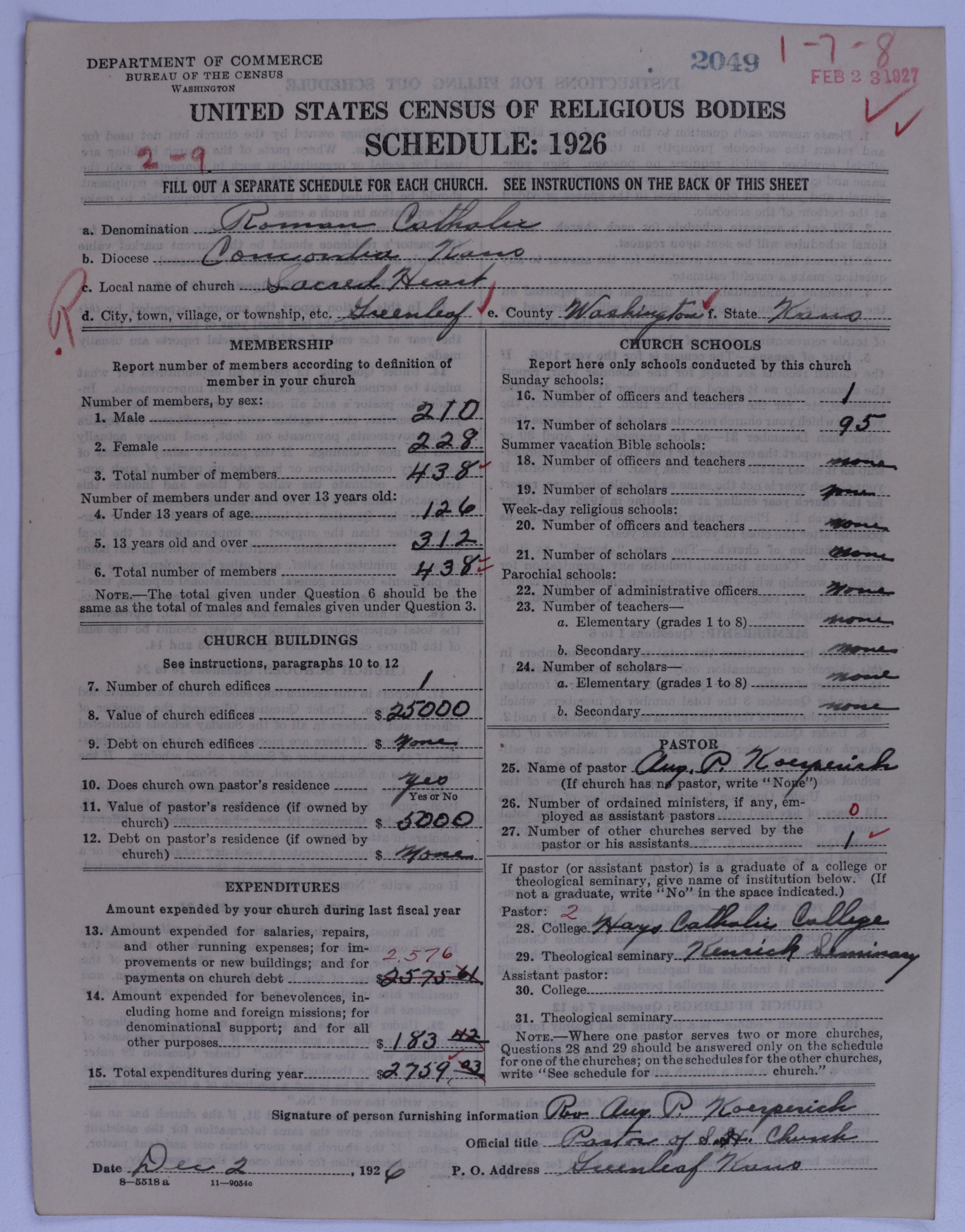 - Roman Catholic Church: 2049